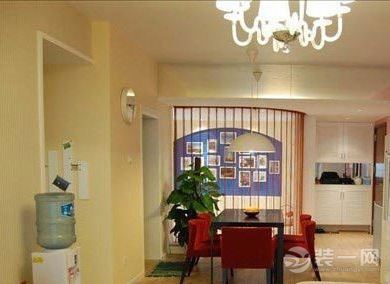 这是一个72平米的小户型,粉色墙面,给人的感觉非常别致,红色的线帘是休闲区与入户玄关以及餐厅之间的隔断。